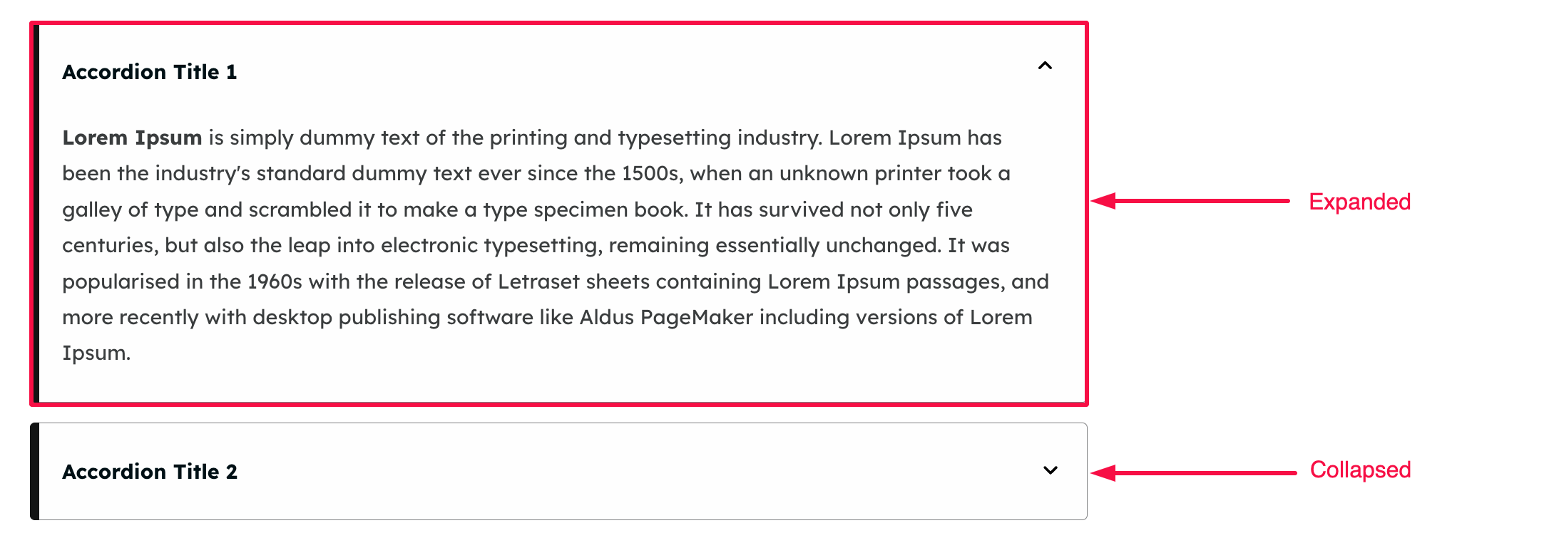 Below you can see two accordions, one in its expanded form, and the other one collapsed.
