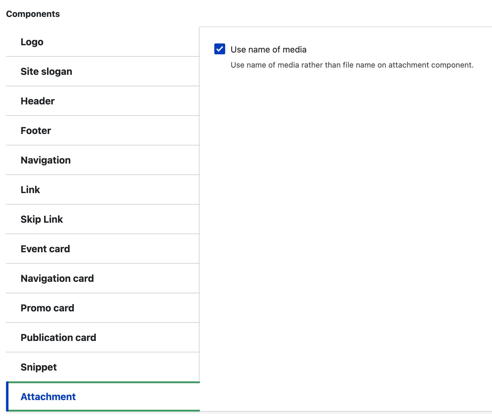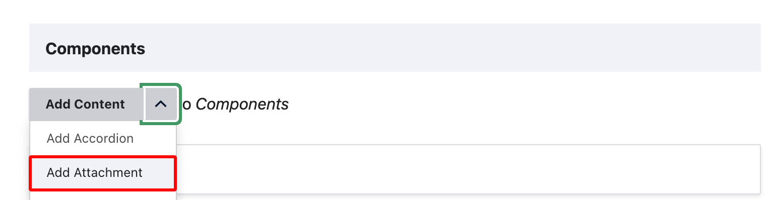 The Attachment component allows you add a downloadable document. The component displays a title, the last updated date and a configurable document title.