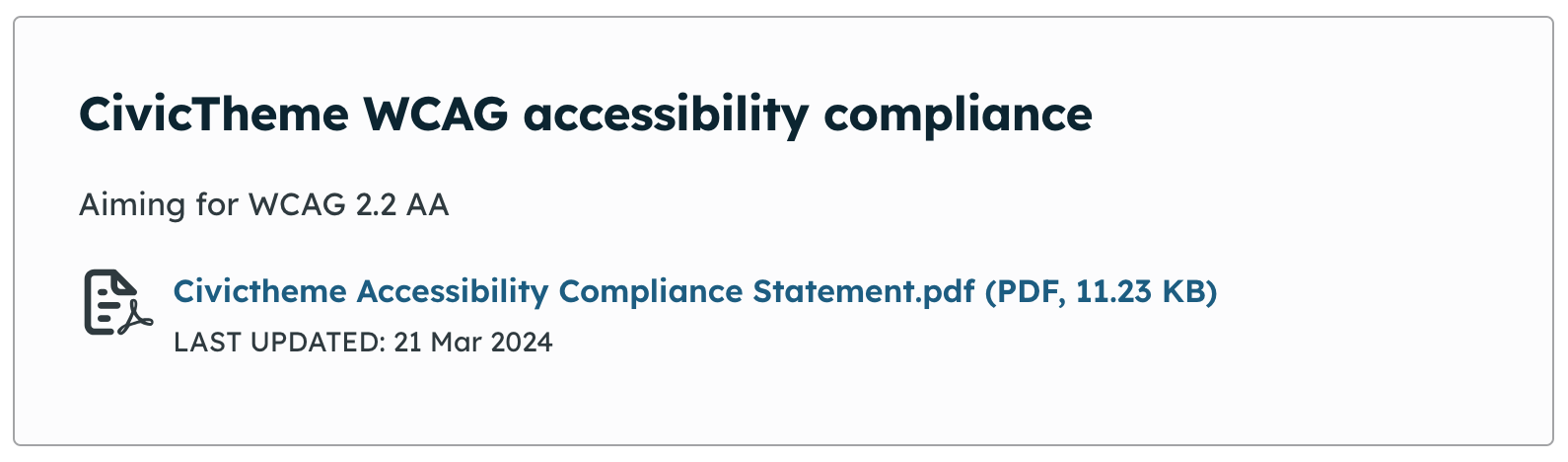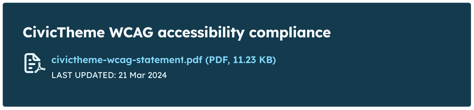Every component in CivicTheme, such as the "Attachment" component, can be shown as a Light or Dark theme component variant. This allows you to build more engaging landing pages with a mix of light and dark theme components.