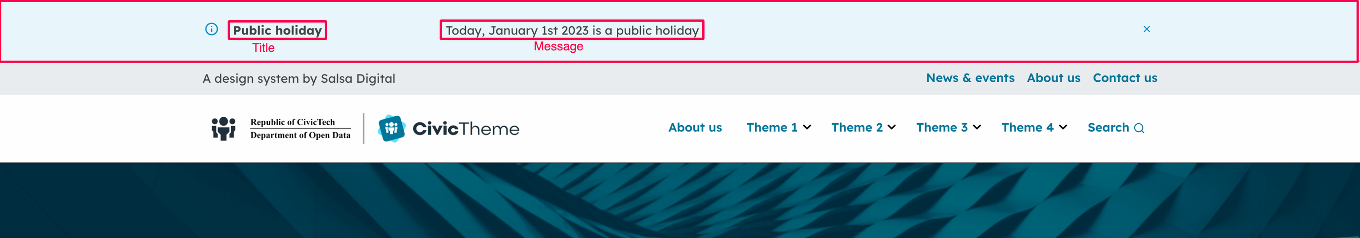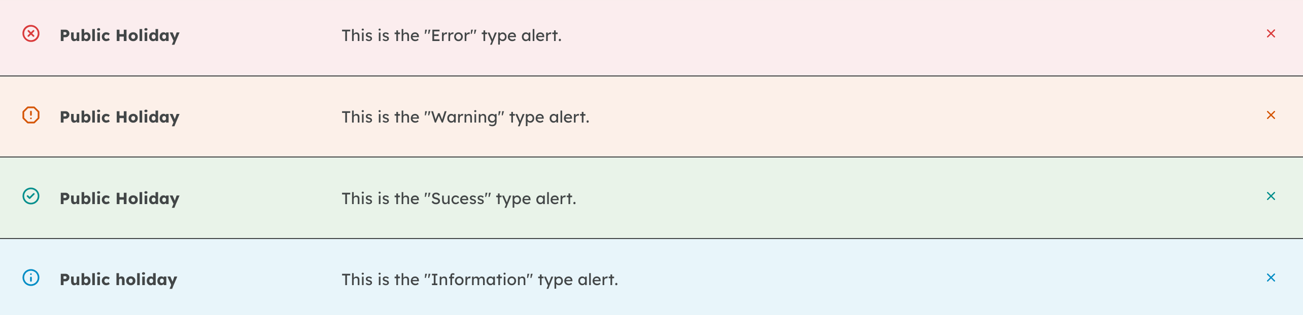 Alerts provide information for site users using a horizontal bar at the top of the screen. Common examples are announcements, notices, warnings, downtime alerts or any other alerts that you want your site visitor to see right away at the top of the page.