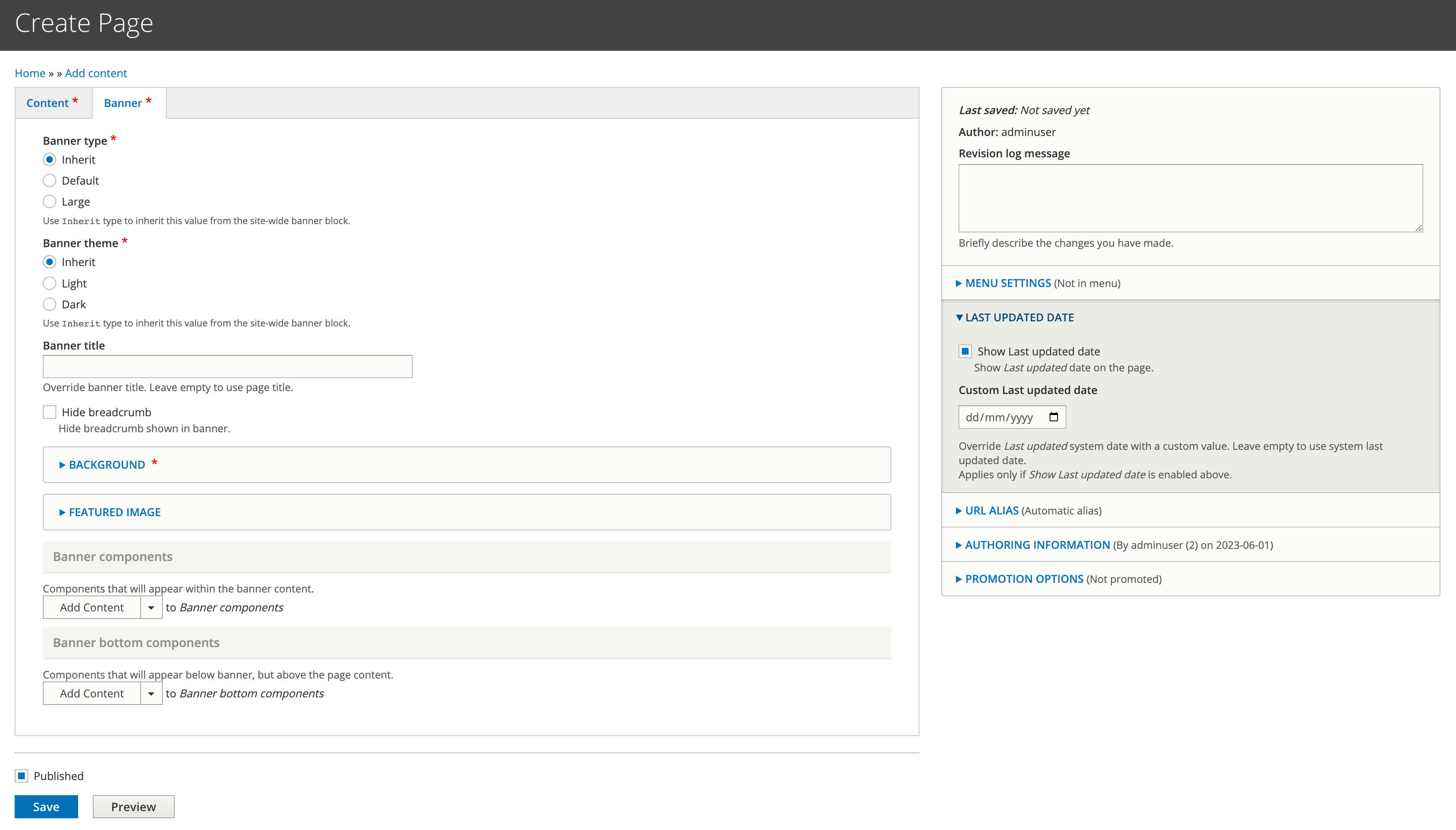 Banner type and Banner theme