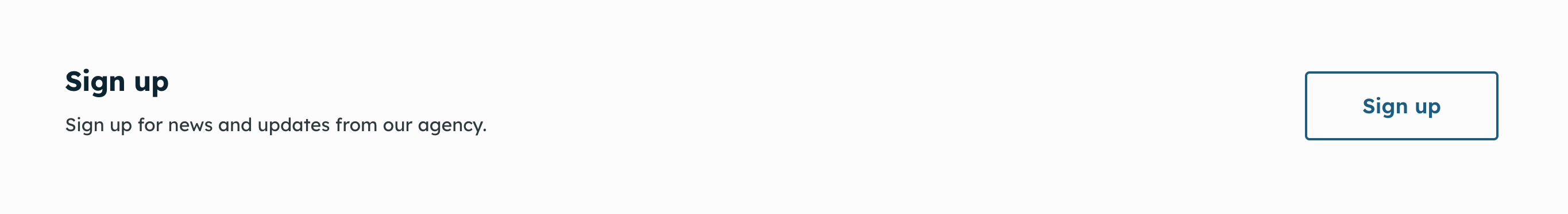 Every component in CivicTheme, such as the "Signup" component, can be shown as a `Light` or `Dark` theme component variant. This allows you to build more engaging landing pages with a mix of light and dark theme components.